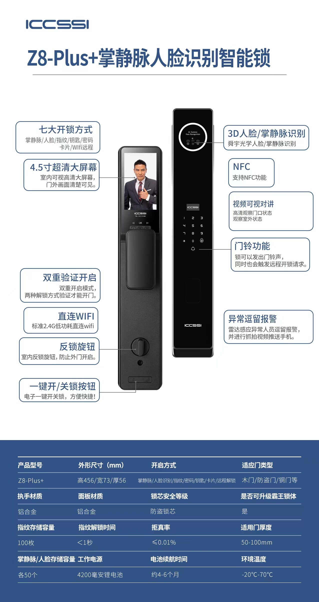 艾栖全掌静脉人脸识别智能锁 Z8 Plus