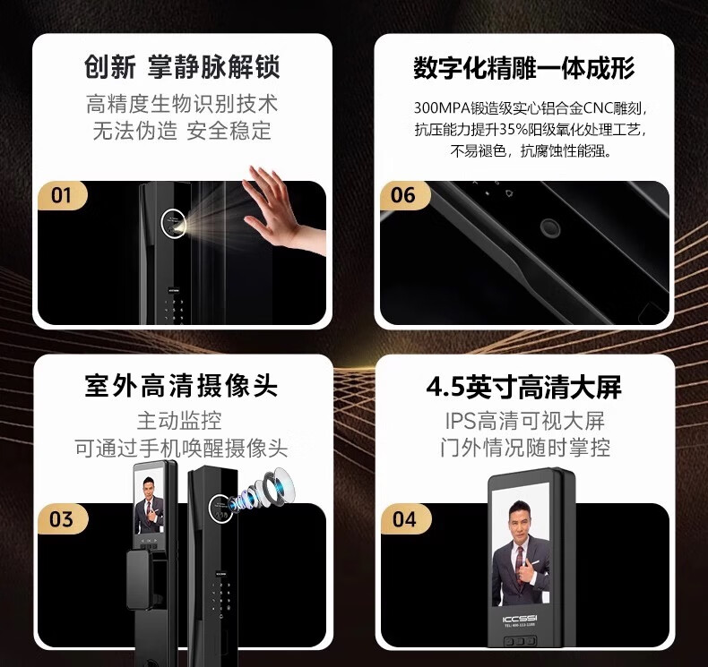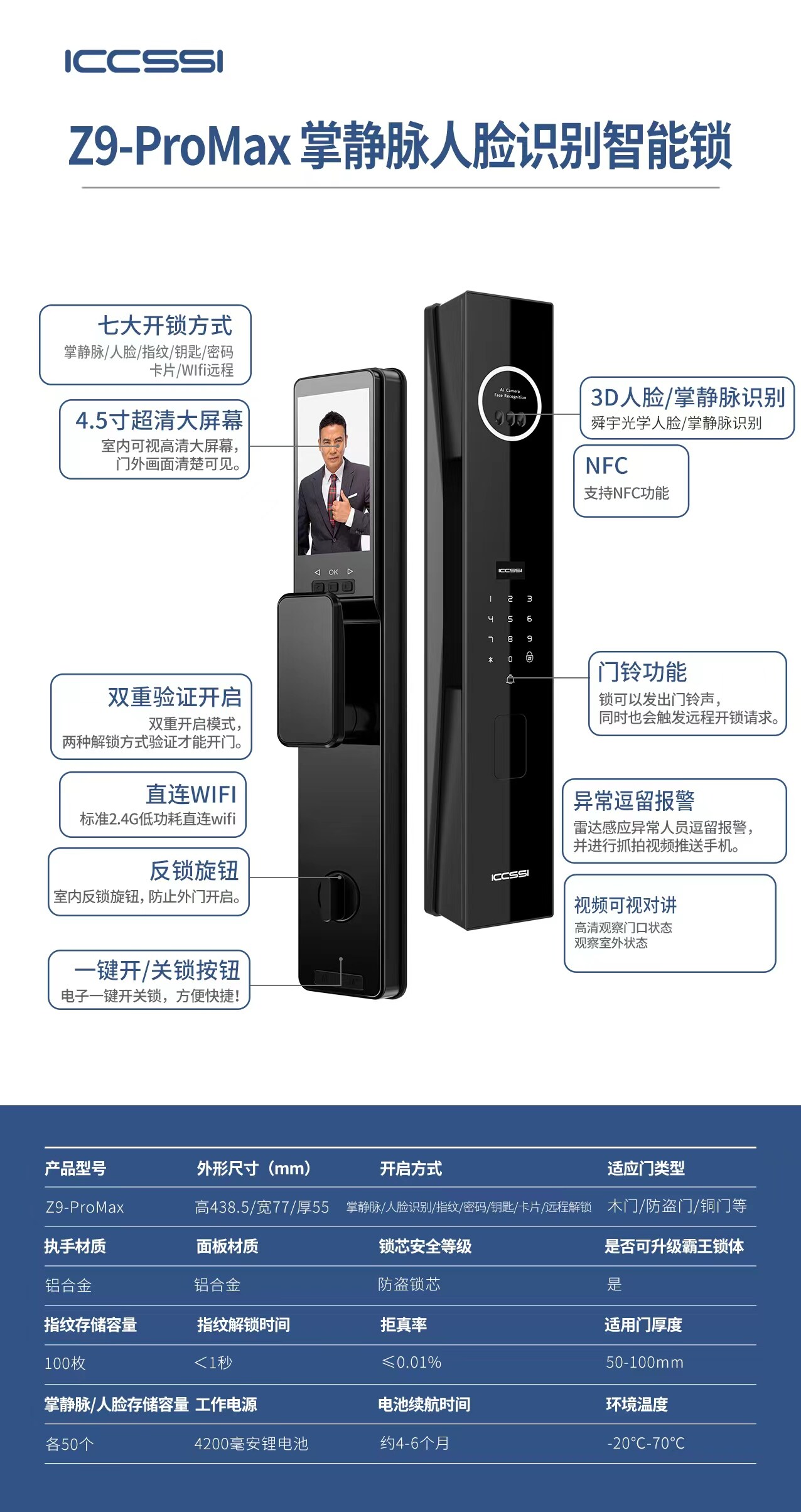 艾栖Z9 全自动人脸识别掌静脉指纹锁