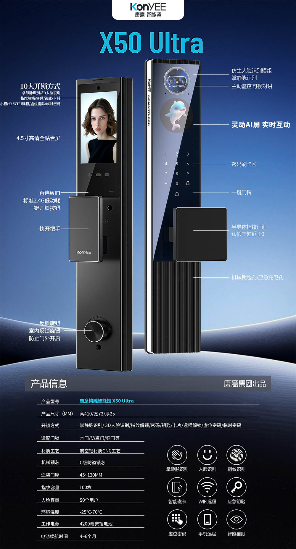 康意 X50 Ultra 灵动屏全自动智能锁 使用小峰管家app